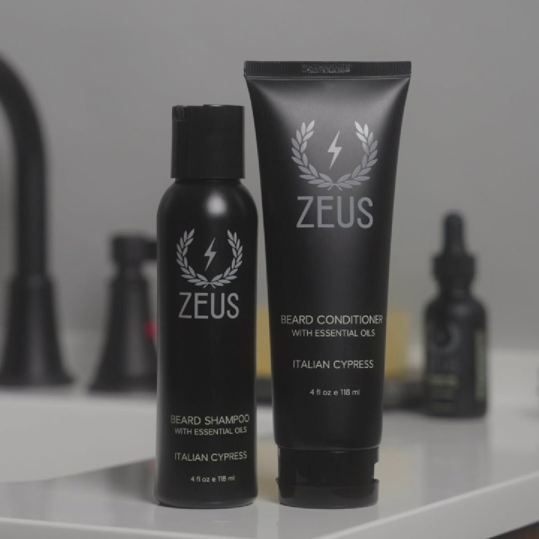 Our Beard Shampoo is formulated with ingredients like Dragons Blood, Green Tea, and Chamomile to cleanse pores, balance skin’s natural oils, and enhance hairs shine & moisture levels. Zeus Beard Conditioner is packed with nature’s best hydrators- Aloe Vera, Avocado, and Jojoba Oil- to soften each strand and eliminate beard itch. Regular use of Zeus Beard Shampoo and Conditioner will keep your whiskers nourished, touchably soft and noticeably healthier.