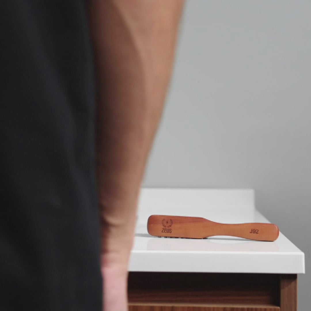 Zeus Handled Mustache & Beard Brush is a high-quality brush that can last you a lifetime. The ergonomic handle allows you to groom and style with ease, while the boar bristles remove dirt for a nice and tidy beard. To penetrate dense and short beards, this handled mustache brush is equipped with either firm or soft boar bristles. These bristles feature rounded tips which are gentle on your skin and a medium-stiff backbone that won't splay against denser beards. The boar bristles on this brush evenly distribute the natural oils from your beard to repair dry hair and to enhance shine.
